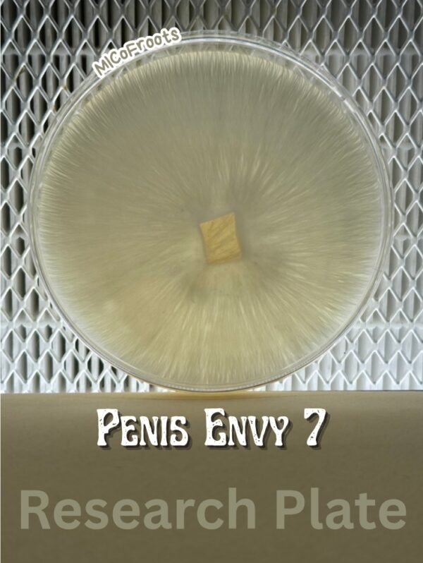 Mixed information on this… some info says, it’s a 7th generation Penis Envy isolation initially stabilized by the mycologist known as “Joshua.” While, other information says, it’s a hybrid of Penis Envy x B+. Either way, this strain produces thick stemmed, brown, fat capped, potent mushrooms with full canopies.