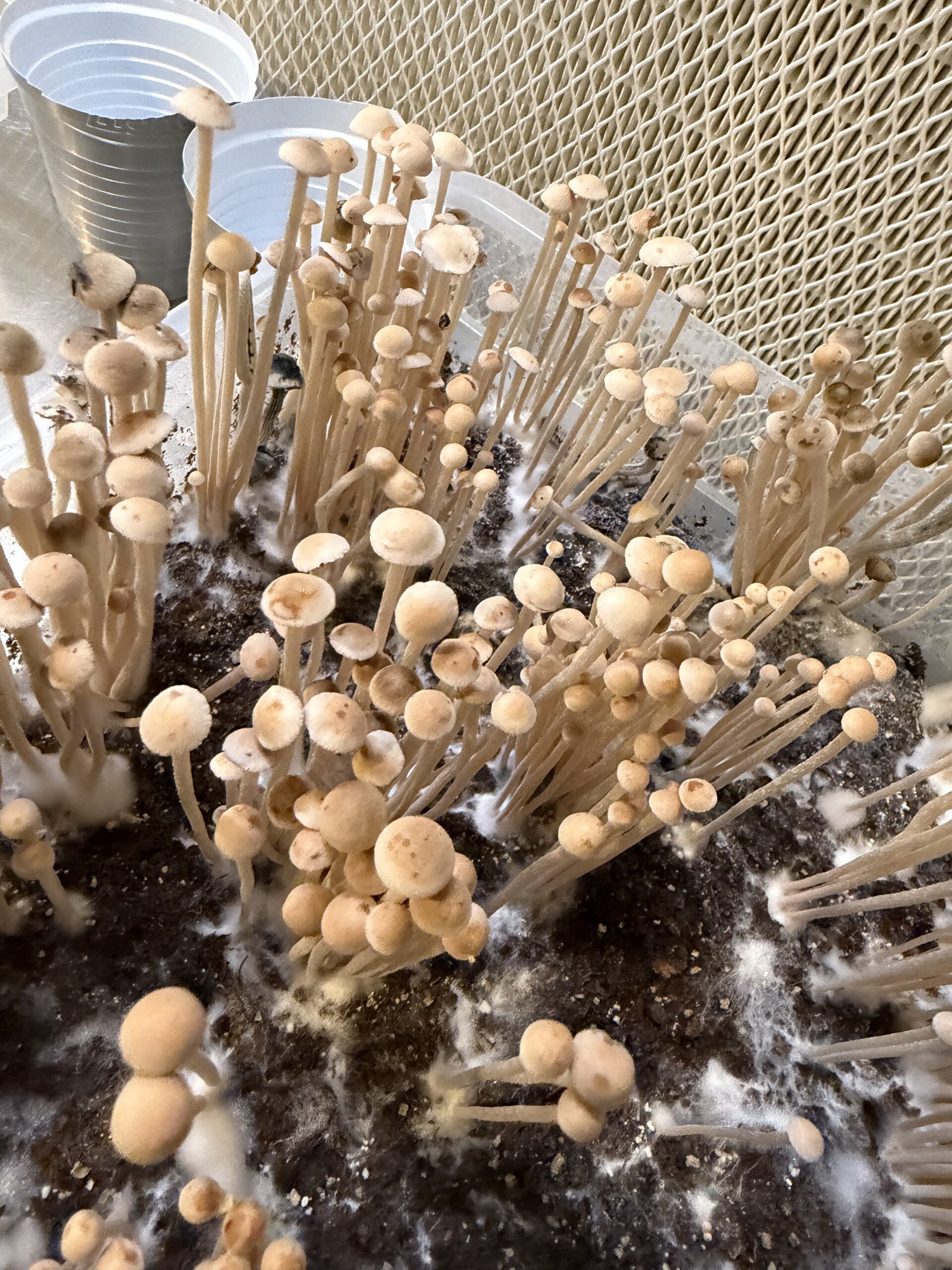 This hybrid was created by Sun Coast Genetics. It has quickly made it was up to few top spots of my favorite cultures to work with. It combines the intense potency, visuals, and mysticism of the Cyanescens, and the easy to grow, fast colonization, and aggressive insets of the Cambodginiensis. These guys colonized entire bulk substrate in only 6 days, and pins showed up only 3 days after the casing layer was added! Truly a gem to work with. They get bigger and thicker than most Panaelous specimens that we have worked with so far. They are intensely potent but very calm and blissful, gives you such gratitude for just existing. These genetics are strong on the color red when pins form and the red slowly fades into a rusty color on the caps throughout maturity, however the gills and spores stay completely RED not rusty but COMPLETELY RED. Great to micro dose, great to macro dose. Komodo x BVI is definitely one of the most well rounded cultures in circulation currently.